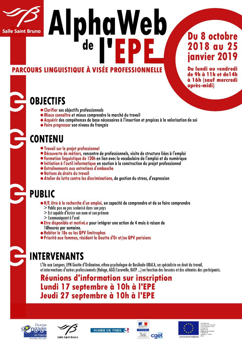 L’Espace Proximité Emploi de la Salle Saint Bruno anime des Parcours Linguistiques à Visée Professionnelle en direction des personnes les plus éloignées de l’emploi.
