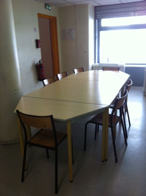 Equipement : évier, frigo, tableau blanc, 15 chaises, tables de réunion/formation.