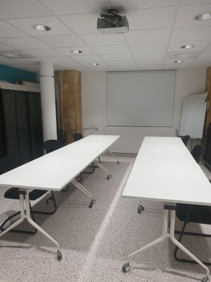 _Equipement : tables, chaises, 1 tableau blanc, 1 paperboard, 1 vidéoprojecteur