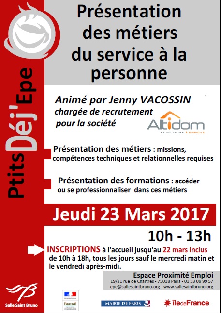 Les « P’tits Déj’ » de l’EPE proposent une séance mensuelle d’informations et de questions de 3h sur un thème précis en lien avec l’emploi ou la formation, animée par un intervenant professionnel du sujet, dans une démarche interactive et conviviale avec les participants.