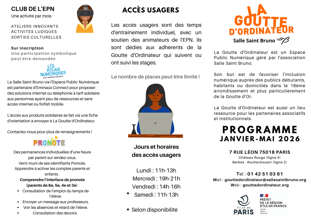 7 rue Léon - 75018 PARISgouttedordinateur@sallesaintbruno.org 01 42 51 03 61