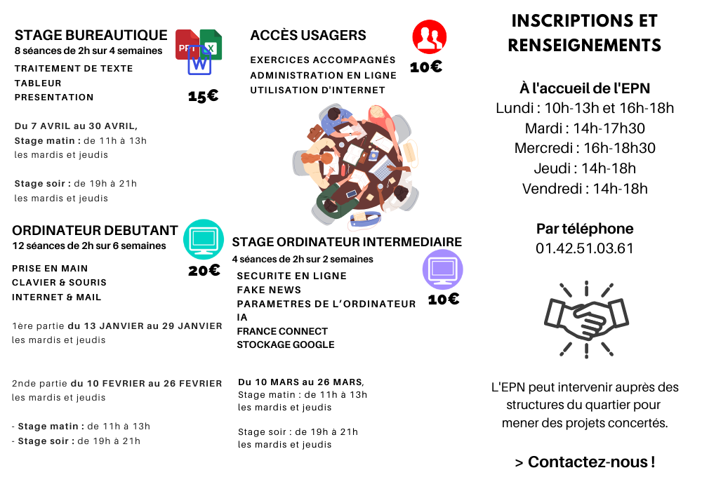 LES COURS, ATELIERS ET STAGESTout au long de l’année la Goutte d’Ordinateur vous propose différents services :